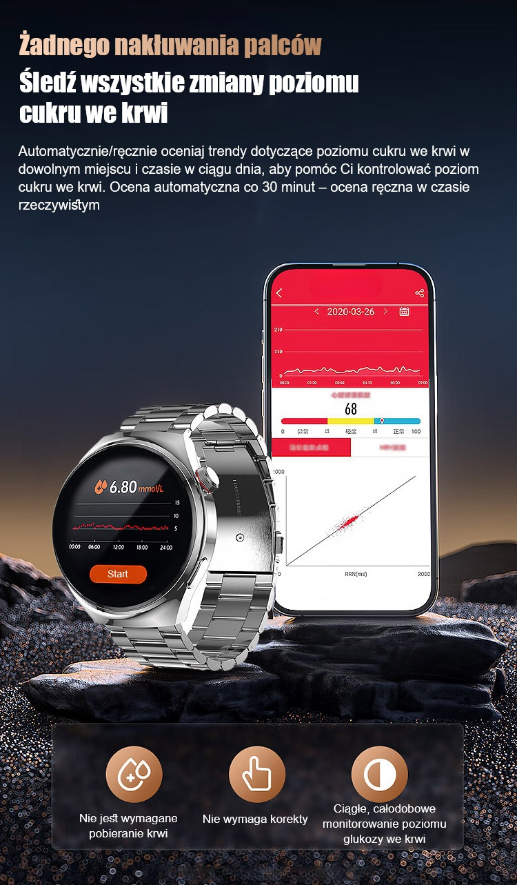 ✅🥇【Limitowany do 20】Zegarek do pomiaru poziomu cukru we krwi ze stalowym paskiem