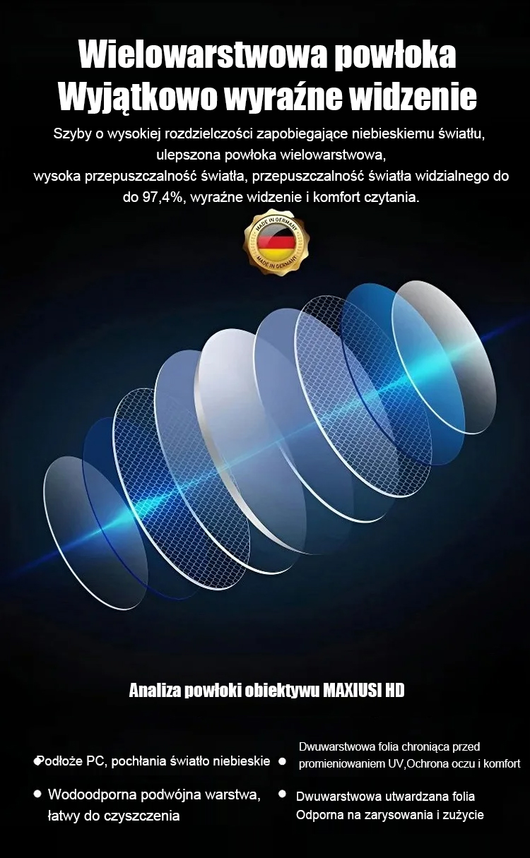 Niemiecka technologia zoomu od 100 do 700 i powiększenia 5x zapewnia ostre widzenie bez względu na wadę wzroku.!